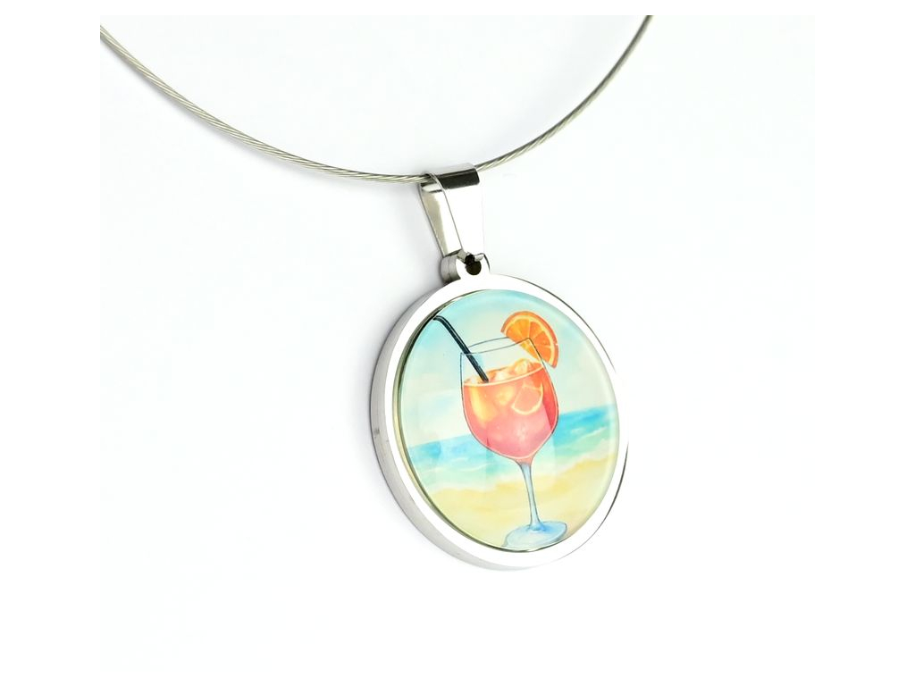Náhrdelník je ručně vyroben v České republice, konkrétně ve Středočeském kraji. Je tvořen skleněným kabošonem, pod kterým je nalepený motiv. Řetízek včetně lůžka, vyrobený českou firmou z chirurgické oceli 304 L, je vhodný pro většinu alergiků na kov. Délka řetízku je 45 cm, je možné ho na přání zkrátit či prodloužit. Stačí napsat požadovanou délku do poznámky v procesu objednávky. Přívěšek má průměr 2,5 cm.