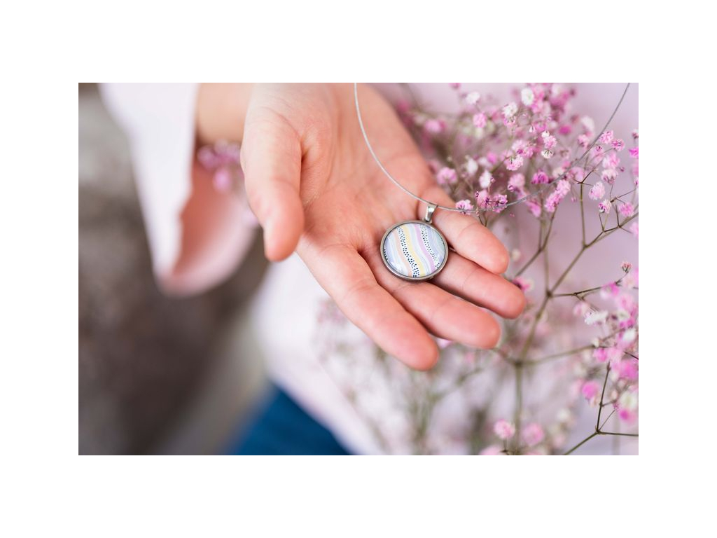 Náhrdelník je ručně vyroben v České republice, konkrétně ve Středočeském kraji. Je tvořen skleněným kabošonem, pod kterým je nalepený motiv. Řetízek včetně lůžka, vyrobený českou firmou z chirurgické oceli 304 L, je vhodný pro většinu alergiků na kov. Délka řetízku je 45 cm, je možné ho na přání zkrátit či prodloužit. Stačí napsat požadovanou délku do poznámky v procesu objednávky. Přívěšek má průměr 2,5 cm.