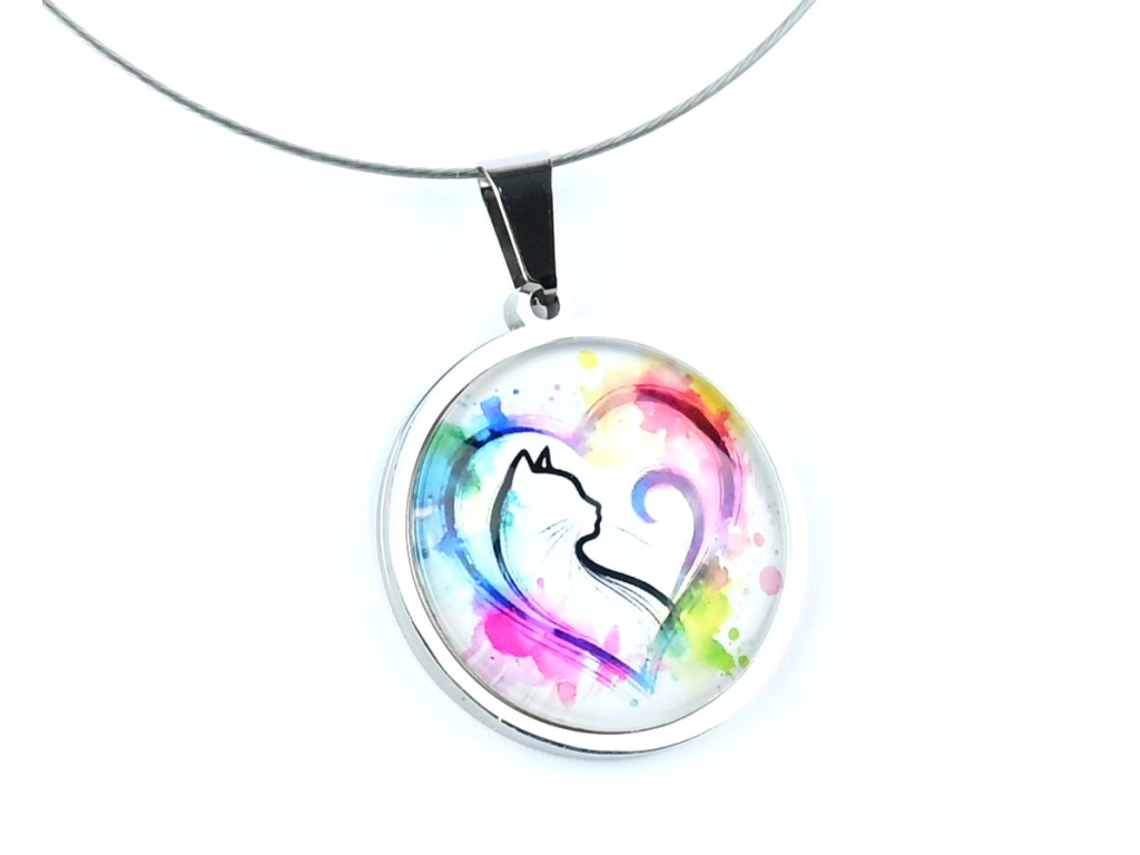 Kočka v srdci náhrdelník