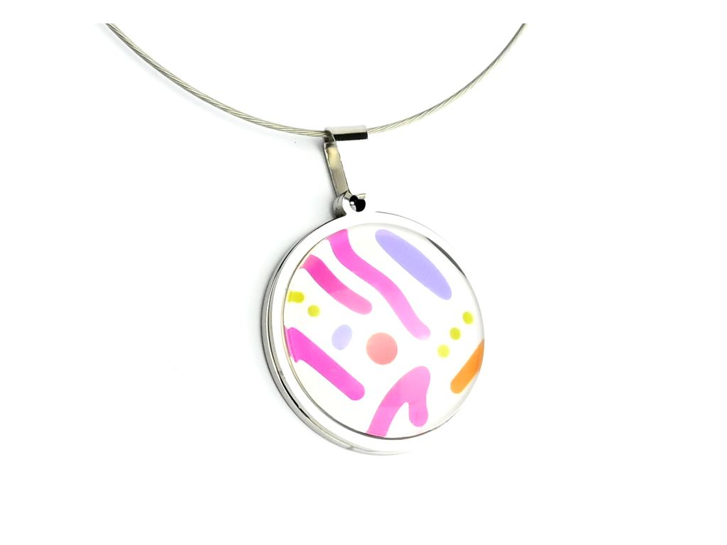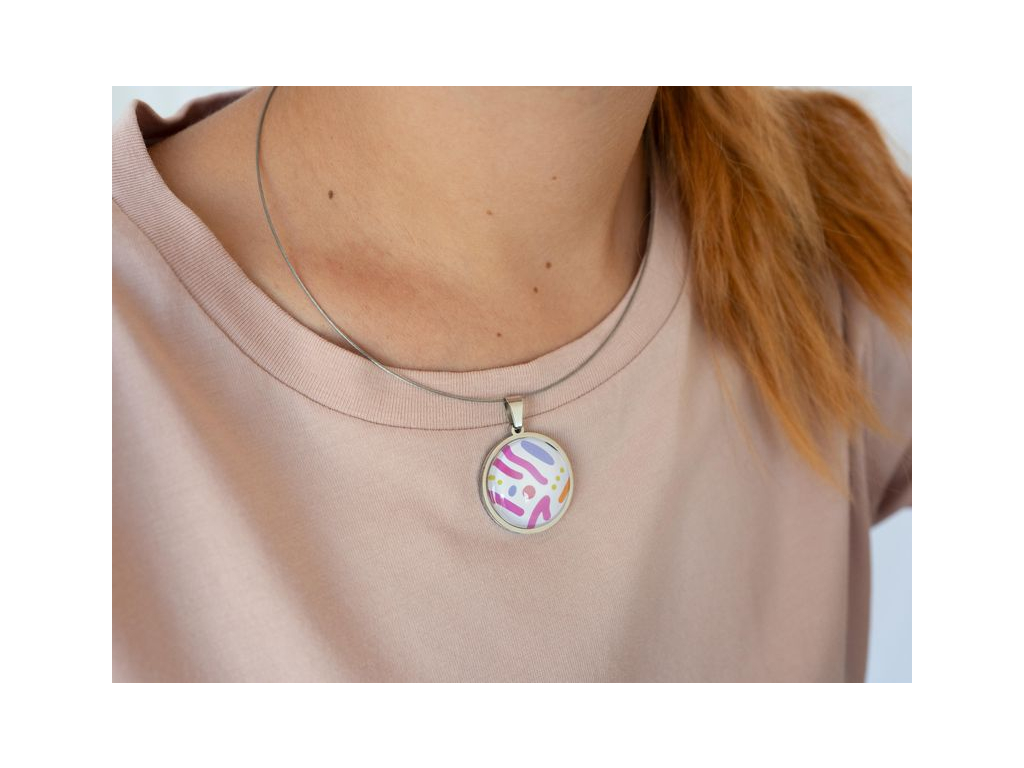 Náhrdelník je ručně vyroben v České republice, konkrétně ve Středočeském kraji. Je tvořen skleněným kabošonem, pod kterým je nalepený motiv. Řetízek včetně lůžka, vyrobený českou firmou z chirurgické oceli 304 L, je vhodný pro většinu alergiků na kov. Délka řetízku je 45 cm, je možné ho na přání zkrátit či prodloužit. Stačí napsat požadovanou délku do poznámky v procesu objednávky. Přívěšek má průměr 2,5 cm.