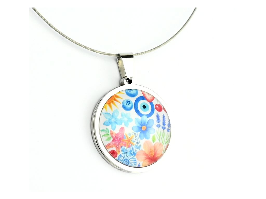 Náhrdelník je ručně vyroben v České republice, konkrétně ve Středočeském kraji. Je tvořen skleněným kabošonem, pod kterým je nalepený motiv. Řetízek včetně lůžka, vyrobený českou firmou z chirurgické oceli 304 L, je vhodný pro většinu alergiků na kov. Délka řetízku je 45 cm, je možné ho na přání zkrátit či prodloužit. Stačí napsat požadovanou délku do poznámky v procesu objednávky. Přívěšek má průměr 2,5 cm.