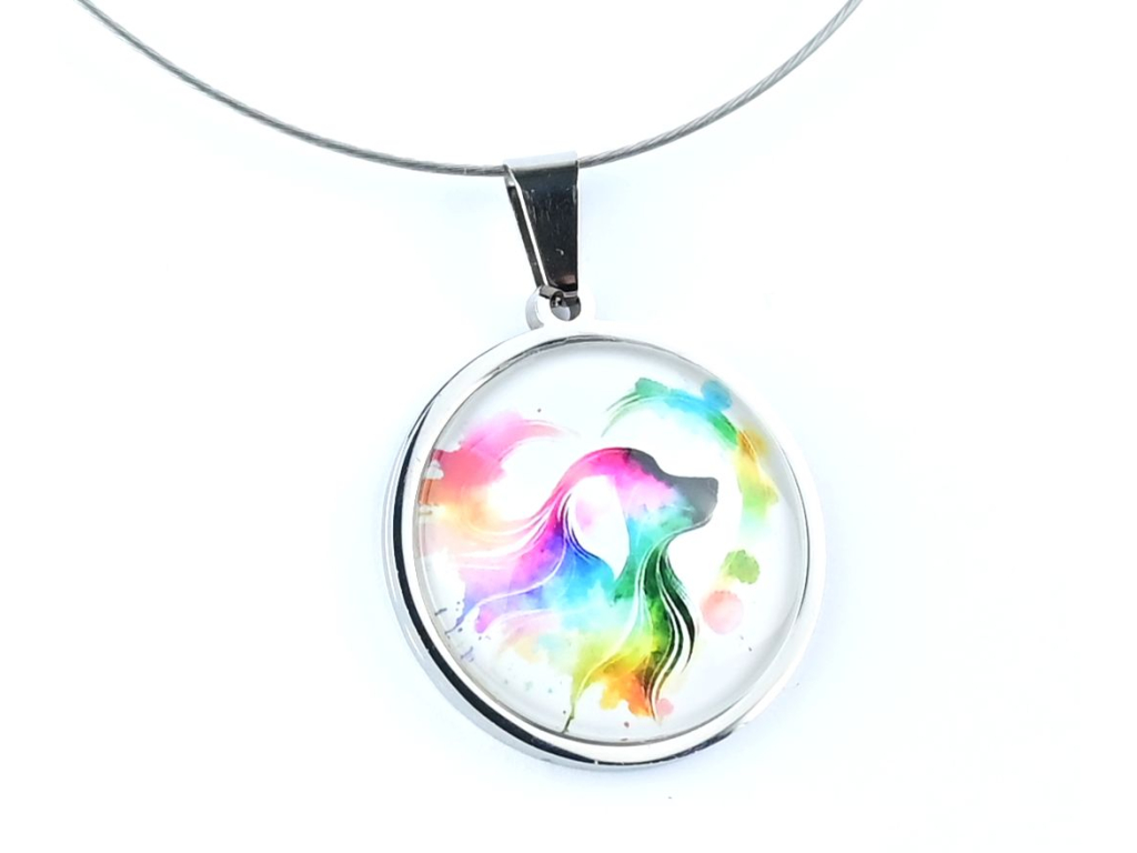 Náhrdelník je ručně vyroben v České republice, konkrétně ve Středočeském kraji. Je tvořen skleněným kabošonem, pod kterým je nalepený motiv. Řetízek včetně lůžka, vyrobený českou firmou z chirurgické oceli 304 L, je vhodný pro většinu alergiků na kov. Délka řetízku je 45 cm, je možné ho na přání zkrátit či prodloužit. Stačí napsat požadovanou délku do poznámky v procesu objednávky. Přívěšek má průměr 2,5 cm.
