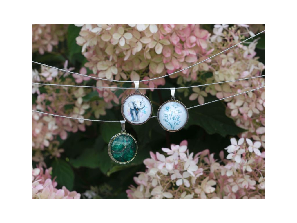Náhrdelník je ručně vyroben v České republice, konkrétně ve Středočeském kraji. Je tvořen skleněným kabošonem, pod kterým je nalepený motiv. Řetízek včetně lůžka, vyrobený českou firmou z chirurgické oceli 304 L, je vhodný pro většinu alergiků na kov. Délka řetízku je 45 cm, je možné ho na přání zkrátit či prodloužit. Stačí napsat požadovanou délku do poznámky v procesu objednávky. Přívěšek má průměr 2,5 cm.