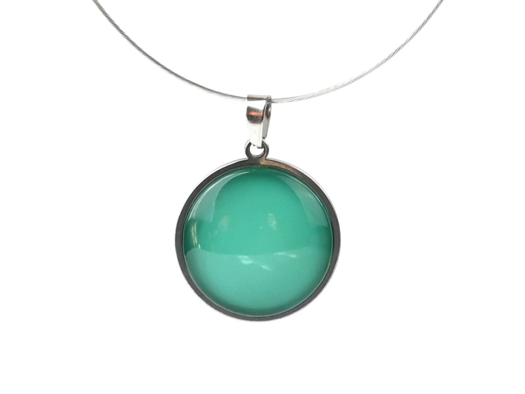 Náhrdelník je ručně vyroben v České republice, konkrétně ve Středočeském kraji. Je tvořen skleněným kabošonem, pod kterým je nalepený motiv. Řetízek včetně lůžka, vyrobený českou firmou z chirurgické oceli 304 L, je vhodný pro většinu alergiků na kov. Délka řetízku je 45 cm, je možné ho na přání zkrátit či prodloužit. Stačí napsat požadovanou délku do poznámky v procesu objednávky. Přívěšek má průměr 2,5 cm.