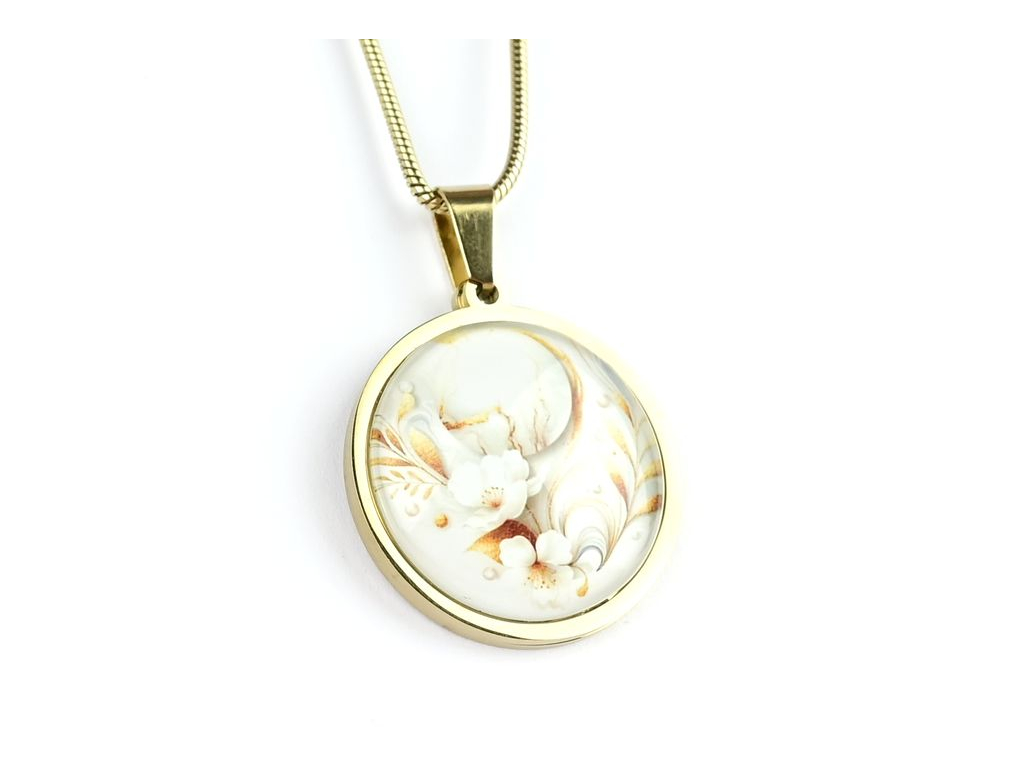 Náhrdelník je ručně vyroben v České republice, konkrétně ve Středočeském kraji. Je tvořen skleněným kabošonem, pod kterým je nalepený motiv. Řetízek včetně lůžka, vyrobený českou firmou z chirurgické oceli 304 L, pozlacené 14K zlatem, je vhodný pro většinu alergiků na kov. Délka řetízku je 45 cm, je možné ho na přání zkrátit či prodloužit. Stačí napsat požadovanou délku do poznámky v procesu objednávky. Přívěšek má průměr 2,5 cm.
