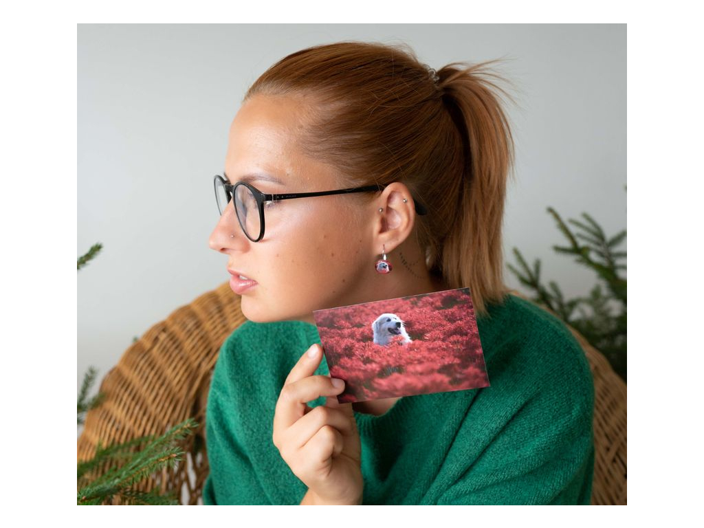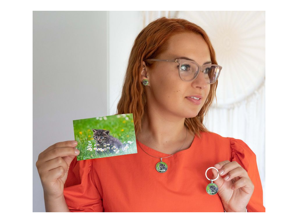 Náušnice jsou ručně vyráběné v České republice, konkrétně ve Středočeském kraji. Jsou tvořené skleněným kabošonem, pod kterým je pečlivě nalepený motiv.