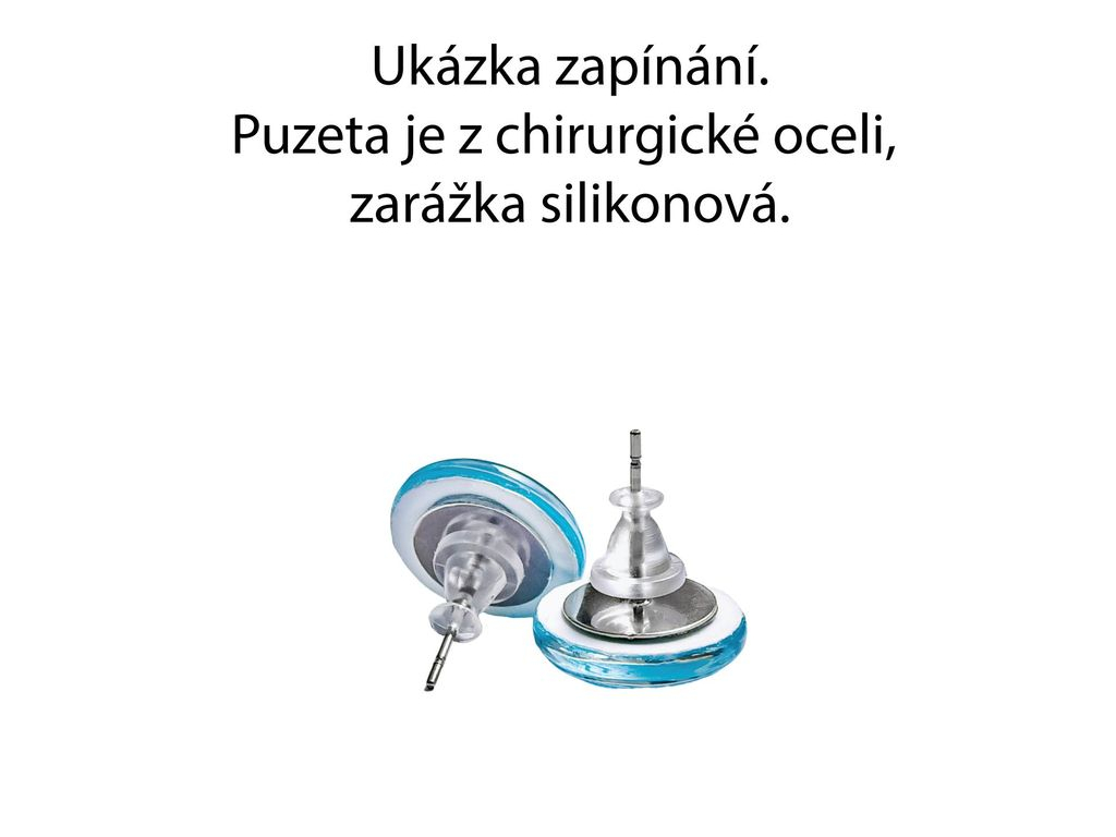 Náušnice pecky mají vzadu puzetu, vyrobenu z chirurgické oceli 304 L. Zarážka je silikonová.