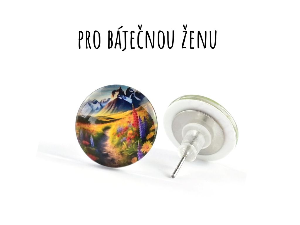 Náušnice jsou ručně vyráběné v České republice, konkrétně ve Středočeském kraji. Jsou tvořené skleněným kabošonem, pod kterým je pečlivě nalepený motiv. Puzeta, vyrobená českou firmou z chirurgické oceli 304 L, je vhodná pro většinu alergiků na kov. Na výběr máte ze dvou průměrů, které si můžete zvolit. Zapínání je ze silikonové zarážky, kterou vidíte na obrázku.