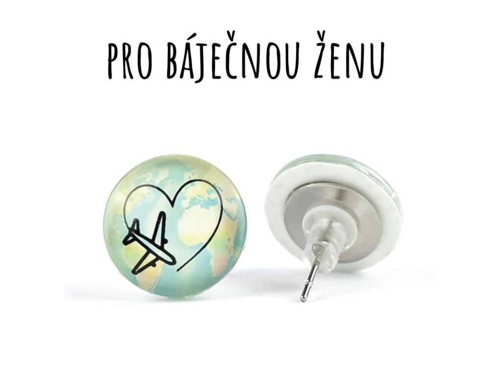 Cestování v srdci skleněné náušnice pecky