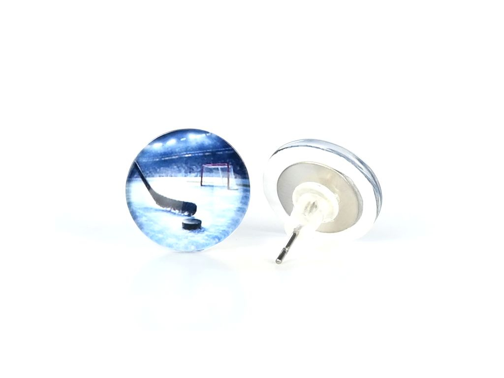 Hokej skleněné náušnice pecky 2
