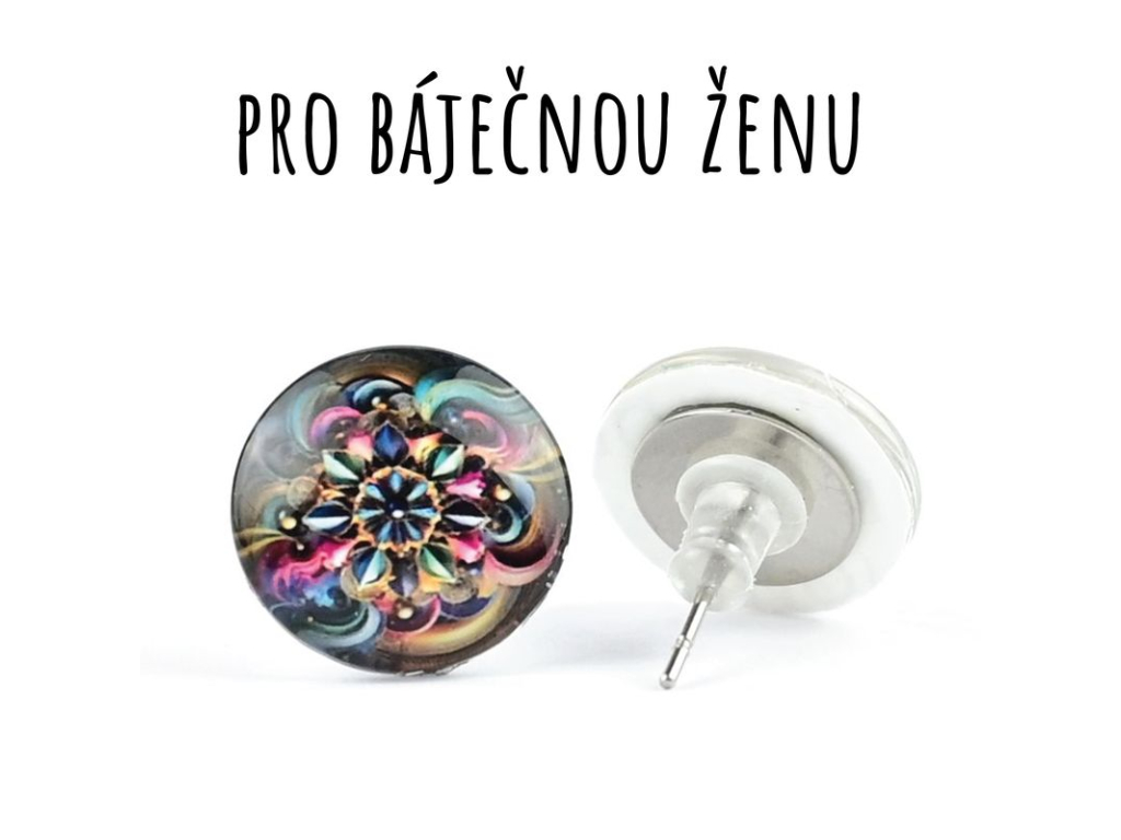Náušnice jsou ručně vyráběné v České republice, konkrétně ve Středočeském kraji. Jsou tvořené skleněným kabošonem, pod kterým je pečlivě nalepený motiv. Puzeta, vyrobená českou firmou z chirurgické oceli 304 L, je vhodná pro většinu alergiků na kov. Na výběr máte ze dvou průměrů, které si můžete zvolit. Zapínání je ze silikonové zarážky, kterou vidíte na obrázku.