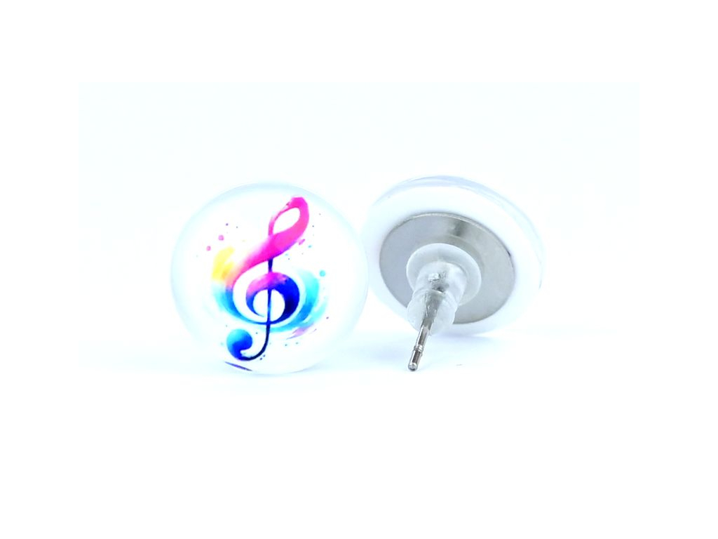 Náušnice jsou ručně vyráběné v České republice, konkrétně ve Středočeském kraji. Jsou tvořené skleněným kabošonem, pod kterým je pečlivě nalepený motiv. Puzeta, vyrobená českou firmou z chirurgické oceli 304 L, je vhodná pro většinu alergiků na kov. Na výběr máte ze dvou průměrů, které si můžete zvolit. Zapínání je ze silikonové zarážky, kterou vidíte na obrázku.