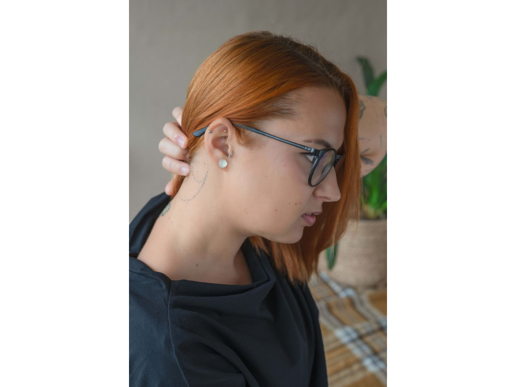 Náušnice jsou ručně vyráběné v České republice, konkrétně ve Středočeském kraji. Jsou tvořené skleněným kabošonem, pod kterým je pečlivě nalepený motiv. Puzeta, vyrobená českou firmou z chirurgické oceli 304 L, je vhodná pro většinu alergiků na kov. Na výběr máte ze tří průměrů, které si můžete zvolit. Zapínání je ze silikonové zarážky, kterou vidíte na obrázku.