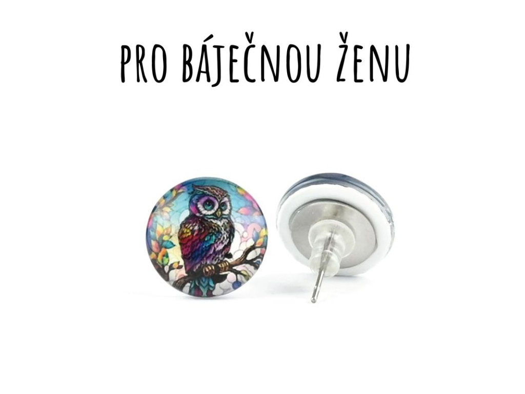 Sova skleněné náušnice pecky