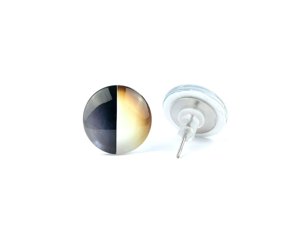 Náušnice jsou ručně vyráběné v České republice, konkrétně ve Středočeském kraji. Jsou tvořené skleněným kabošonem, pod kterým je pečlivě nalepený motiv. Puzeta, vyrobená českou firmou z chirurgické oceli 304 L, je vhodná pro většinu alergiků na kov. Na výběr máte ze dvou průměrů, které si můžete zvolit. Zapínání je ze silikonové zarážky, kterou vidíte na obrázku.