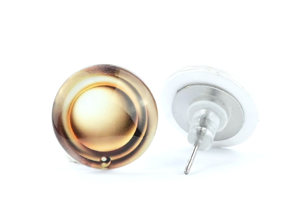 Náušnice jsou ručně vyráběné v České republice, konkrétně ve Středočeském kraji. Jsou tvořené skleněným kabošonem, pod kterým je pečlivě nalepený motiv. Puzeta, vyrobená českou firmou z chirurgické oceli 304 L, je vhodná pro většinu alergiků na kov. Na výběr máte ze dvou průměrů, které si můžete zvolit. Zapínání je ze silikonové zarážky, kterou vidíte na obrázku.