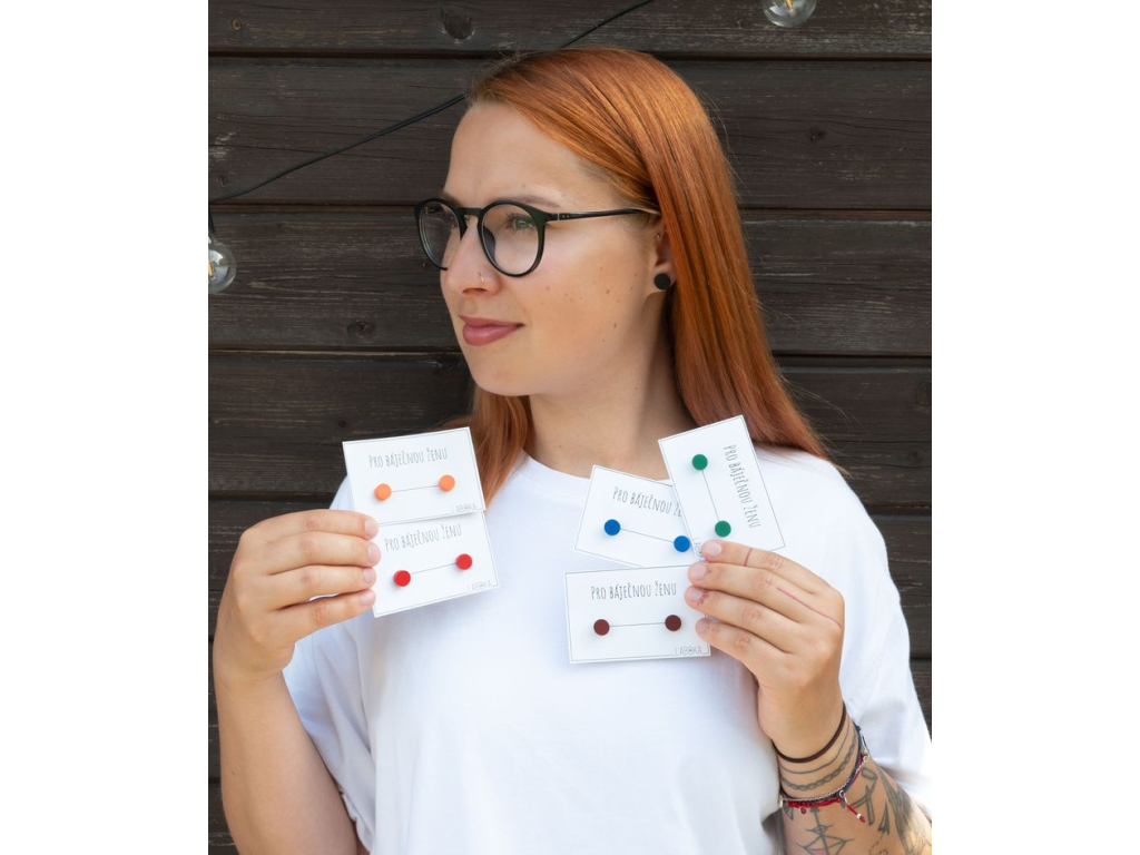 Náušnice jsou ručně vyráběné v České republice, konkrétně ve Středočeském kraji. Jsou tvořené ze dřeva, které je potištěno barvou. Puzeta, vyrobená českou firmou z chirurgické oceli 304 L, je vhodná pro většinu alergiků na kov.