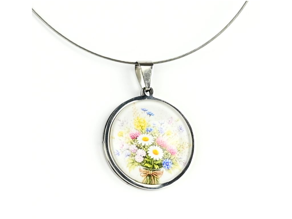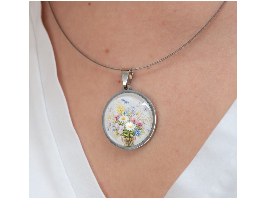 Náhrdelník je ručně vyroben v České republice, konkrétně ve Středočeském kraji. Je tvořen skleněným kabošonem, pod kterým je nalepený motiv. Řetízek včetně lůžka, vyrobený českou firmou z chirurgické oceli 304 L, je vhodný pro většinu alergiků na kov. Délka řetízku je 45 cm, je možné ho na přání zkrátit či prodloužit. Stačí napsat požadovanou délku do poznámky v procesu objednávky. Přívěšek má průměr 2,5 cm.