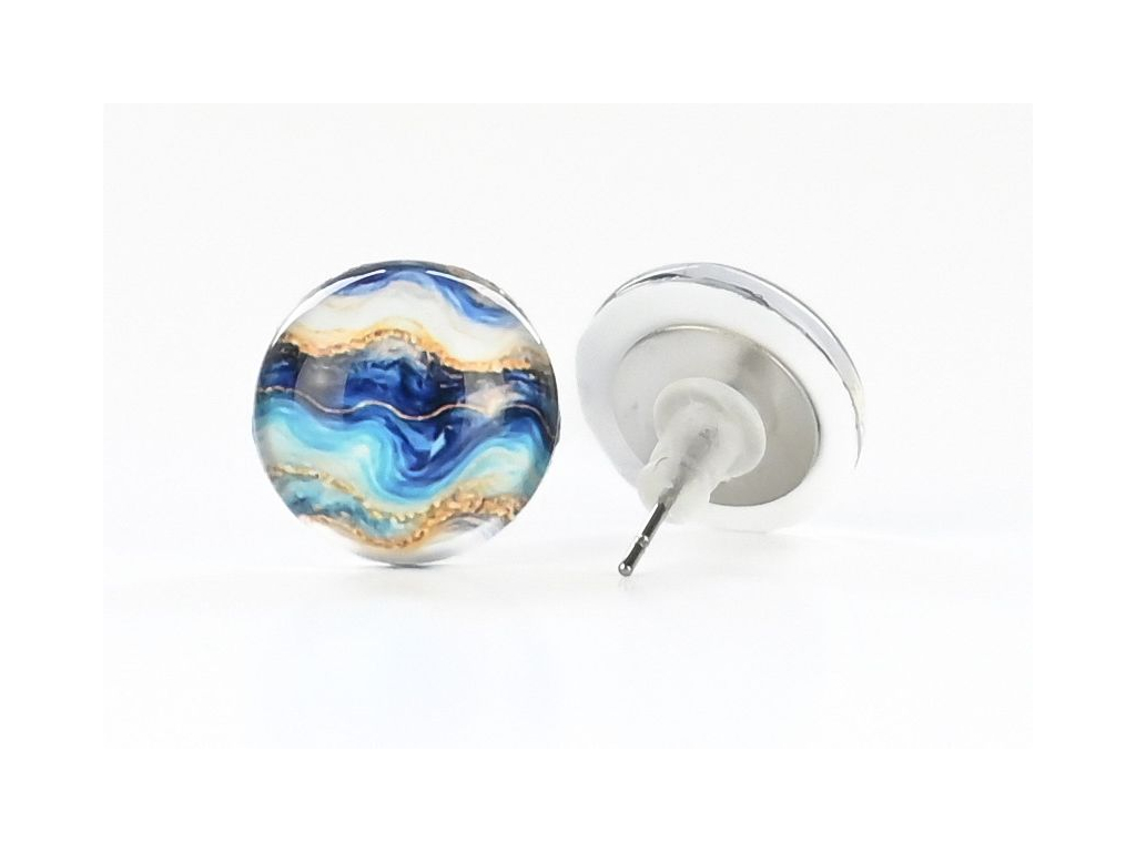 Modrý mramor skleněné náušnice pecky