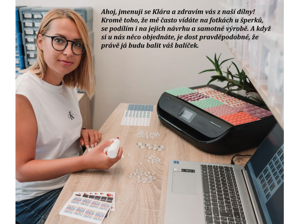 Náušnice jsou ručně vyráběné v České republice, konkrétně ve Středočeském kraji. Jsou tvořené skleněným kabošonem, pod kterým je nalepený motiv. Háček, vyrobený českou firmou je z chirurgické oceli 316 L, je vhodný pro většinu alergiků na kov.