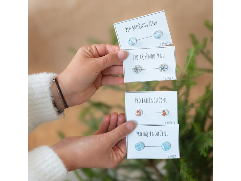 Zimní kvítí skleněné náušnice pecky - 2. JAKOST