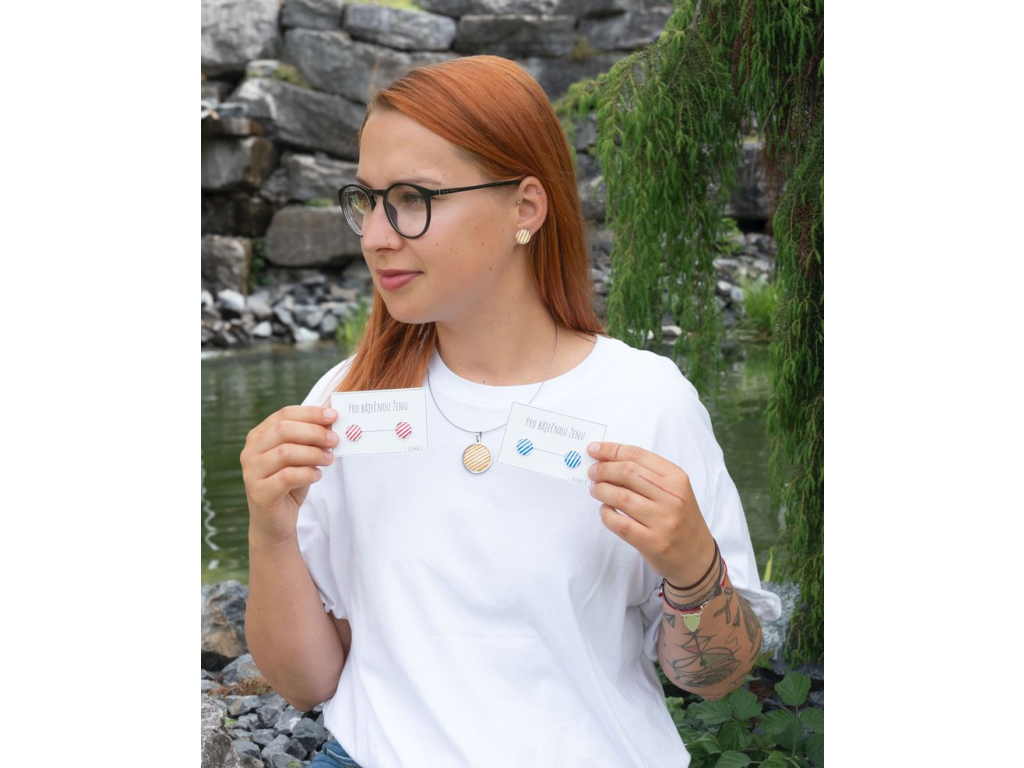Náušnice jsou ručně vyráběné v České republice, konkrétně ve Středočeském kraji. Jsou tvořené skleněným kabošonem, pod kterým je pečlivě nalepený motiv. Puzeta, vyrobená českou firmou z chirurgické oceli 304 L, je vhodná pro většinu alergiků na kov. Na výběr máte ze tří průměrů, které si můžete zvolit. Zapínání je ze silikonové zarážky, kterou vidíte na obrázku.