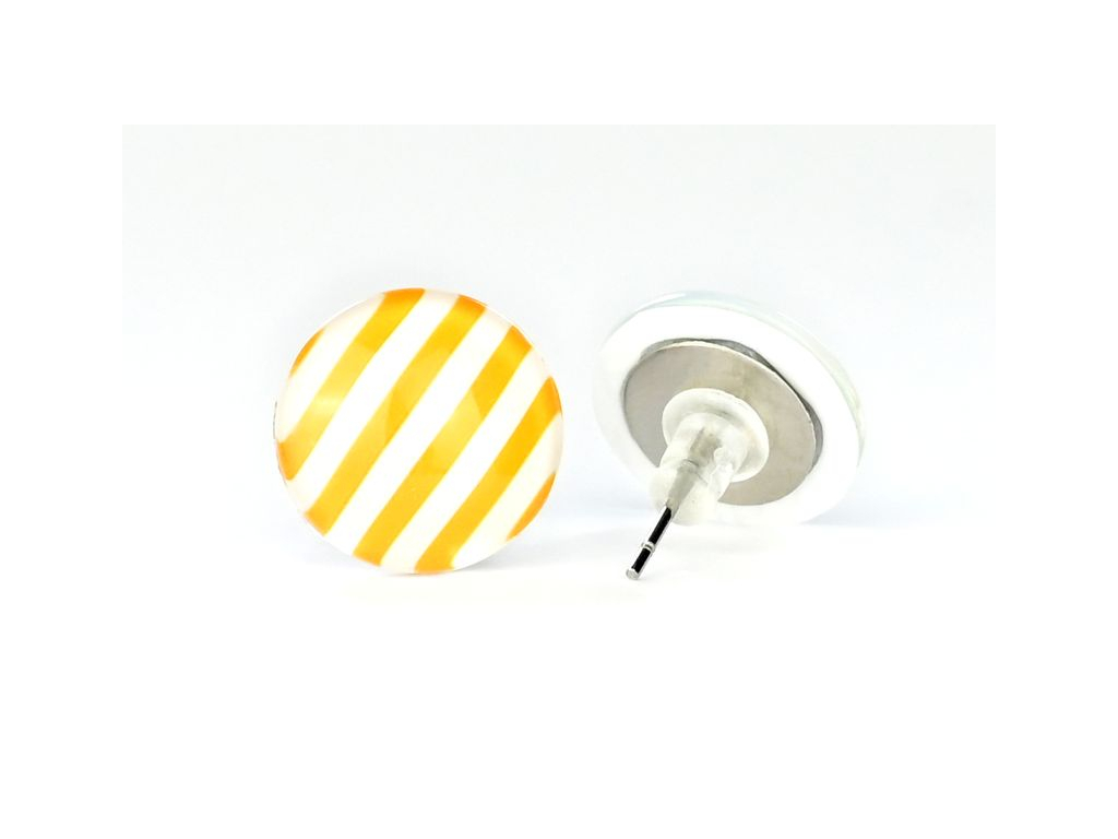 Žluto-bílé pruhy skleněné náušnice pecky - 2. JAKOST