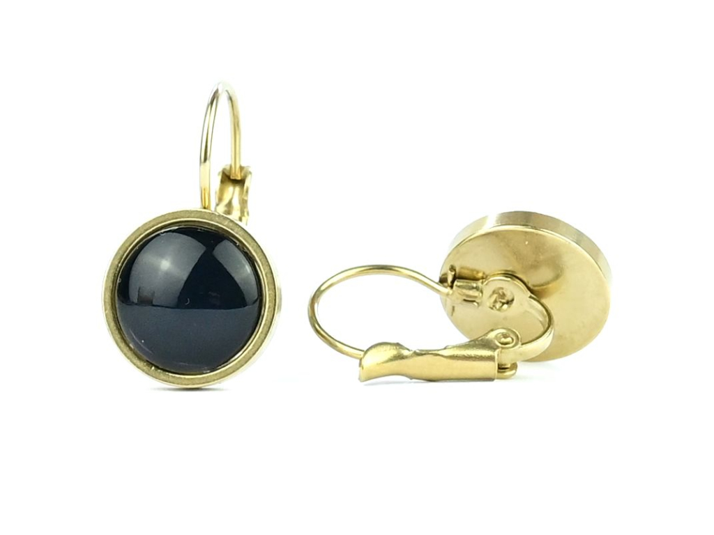 Černé náušnice ZLATÉ visací MENŠÍ háček
