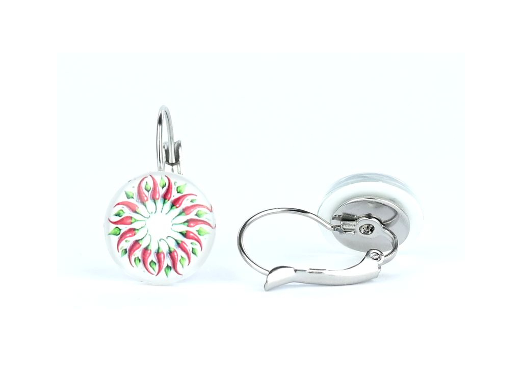 Náušnice jsou ručně vyráběné v České republice, konkrétně ve Středočeském kraji. Jsou tvořené skleněným kabošonem, pod kterým je nalepený motiv. Háček, vyrobený českou firmou je z chirurgické oceli 316 L, je vhodný pro většinu alergiků na kov.