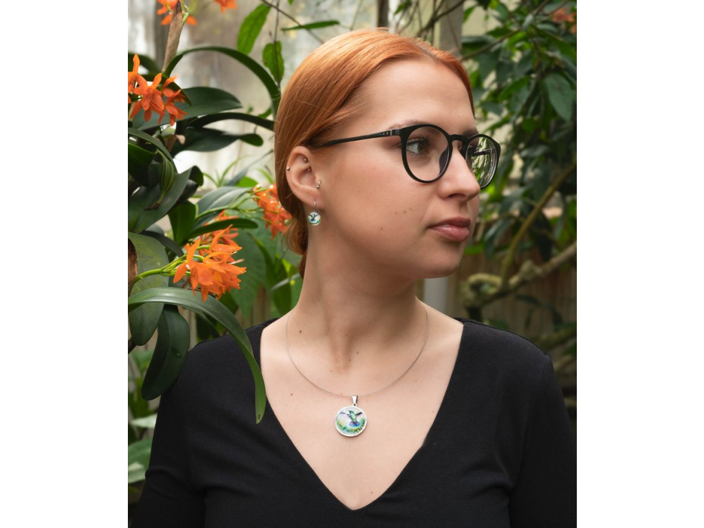 Náušnice jsou ručně vyráběné v České republice, konkrétně ve Středočeském kraji. Jsou tvořené skleněným kabošonem, pod kterým je nalepený motiv. Háček, vyrobený českou firmou je z chirurgické oceli 316 L, je vhodný pro většinu alergiků na kov.