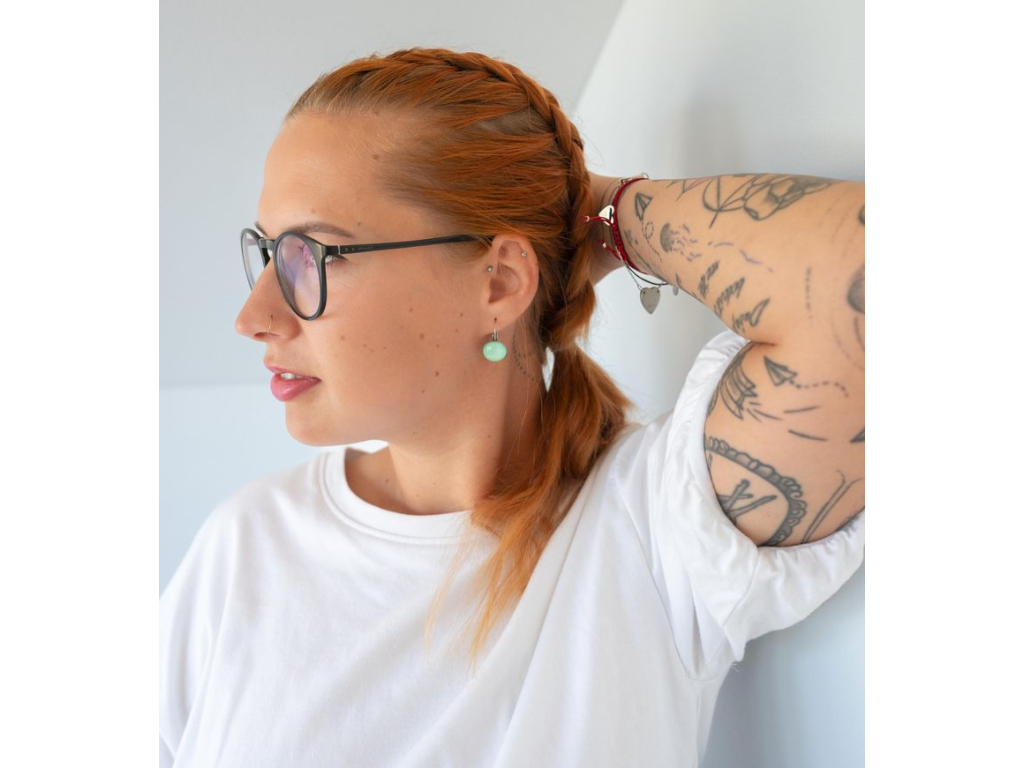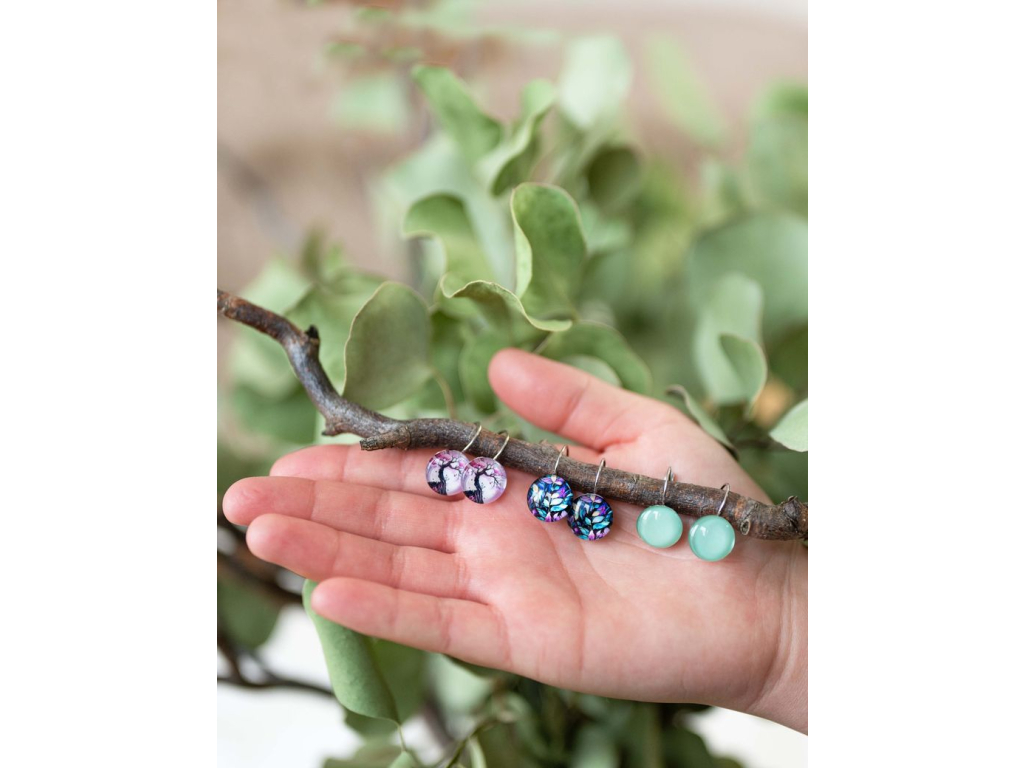 Náušnice jsou ručně vyráběné v České republice, konkrétně ve Středočeském kraji. Jsou tvořené skleněným kabošonem, pod kterým je nalepený motiv. Háček, vyrobený českou firmou je z chirurgické oceli 316 L, je vhodný pro většinu alergiků na kov.