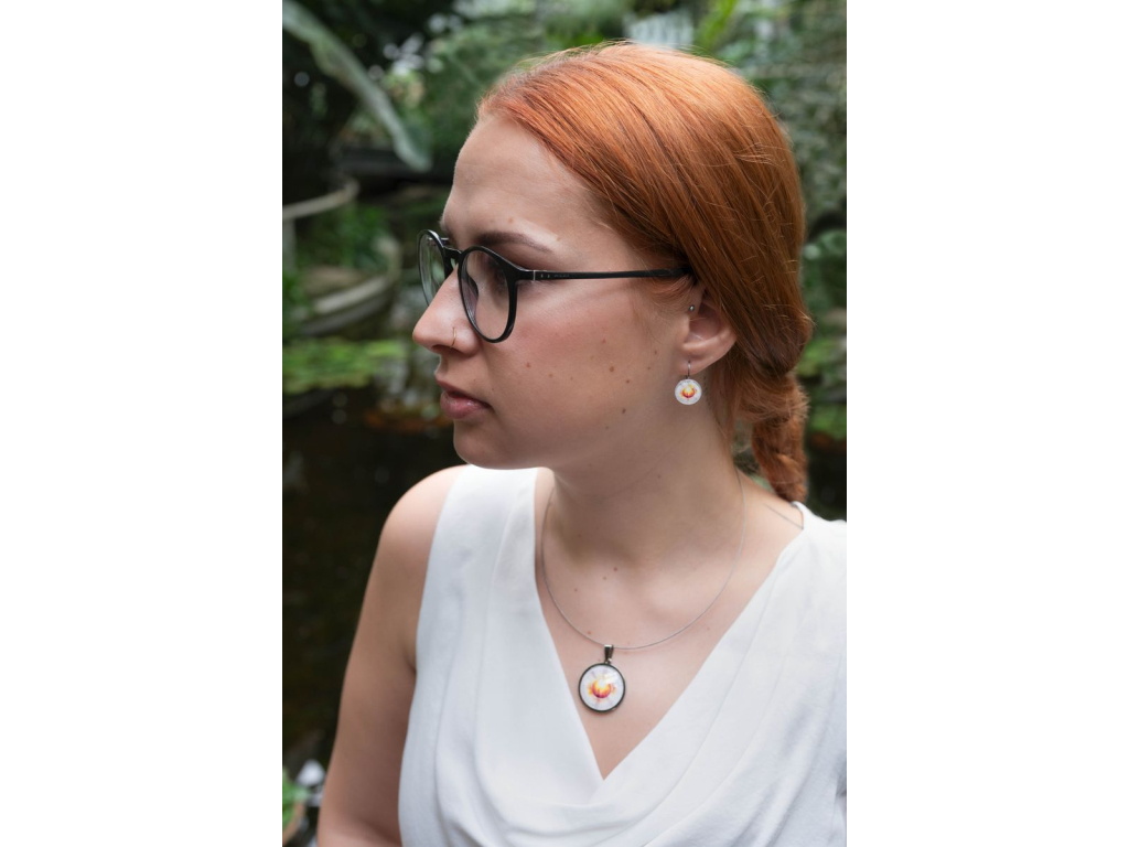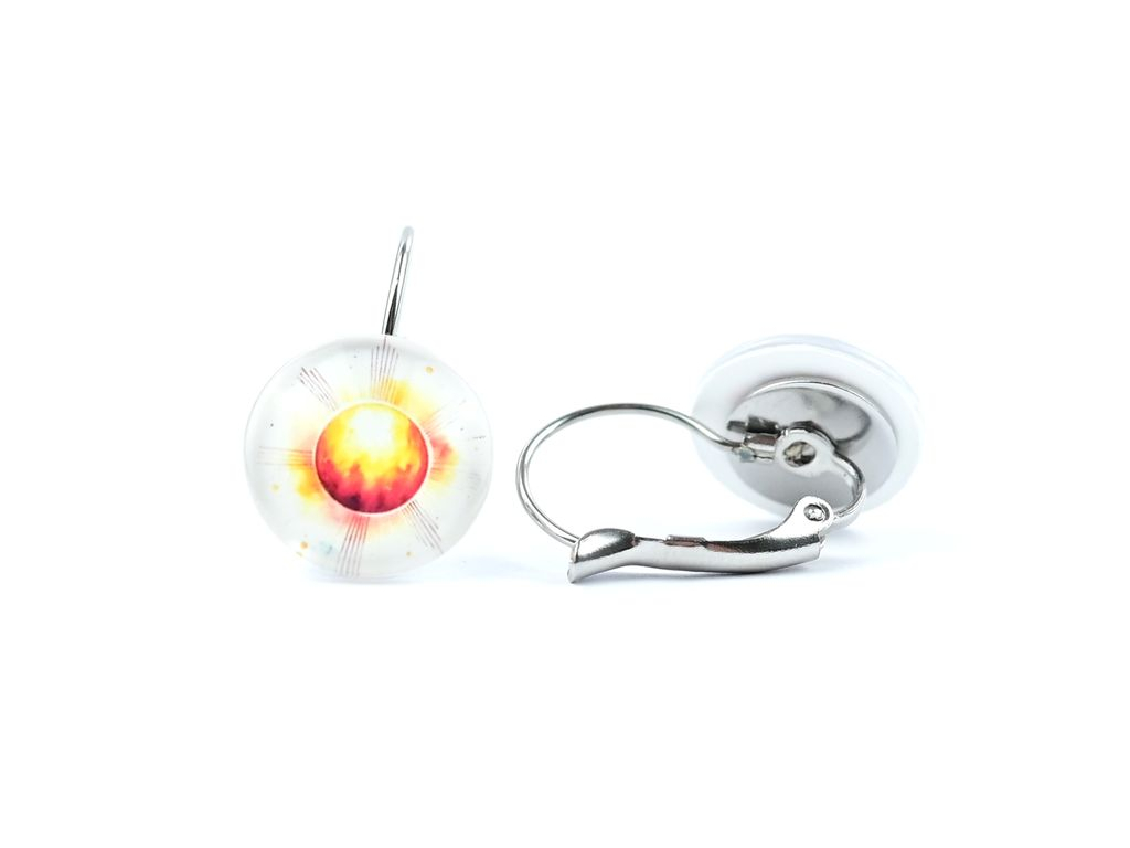 Náušnice jsou ručně vyráběné v České republice, konkrétně ve Středočeském kraji. Jsou tvořené skleněným kabošonem, pod kterým je nalepený motiv. Háček, vyrobený českou firmou je z chirurgické oceli 316 L, je vhodný pro většinu alergiků na kov.