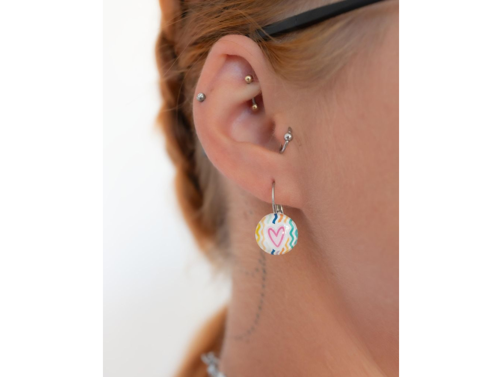 Náušnice jsou ručně vyráběné v České republice, konkrétně ve Středočeském kraji. Jsou tvořené skleněným kabošonem, pod kterým je nalepený motiv. Háček, vyrobený českou firmou je z chirurgické oceli 316 L, je vhodný pro většinu alergiků na kov.