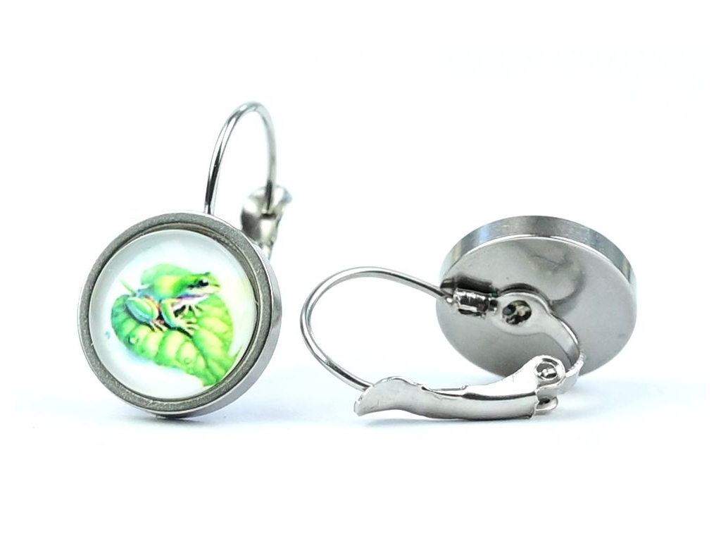 Náušnice jsou ručně vyráběné v České republice, konkrétně ve Středočeském kraji. Jsou tvořené skleněným kabošonem, pod kterým je pečlivě nalepený motiv. Háček, vyrobený českou firmou z chirurgické oceli 316 L, je vhodný pro většinu alergiků na kov.