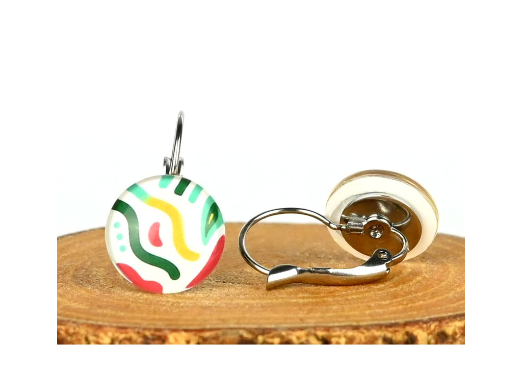 Náušnice jsou ručně vyráběné v České republice, konkrétně ve Středočeském kraji. Jsou tvořené skleněným kabošonem, pod kterým je nalepený motiv. Háček, vyrobený českou firmou je z chirurgické oceli 316 L, je vhodný pro většinu alergiků na kov.