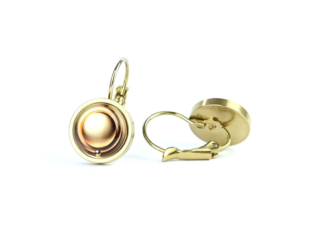 Náušnice jsou ručně vyráběné v České republice, konkrétně ve Středočeském kraji. Jsou tvořené skleněným kabošonem, pod kterým je pečlivě nalepený motiv. Háček, vyrobený českou firmou z chirurgické oceli 316 L, pozlacený 14K zlatem, je vhodný pro většinu alergiků na kov.