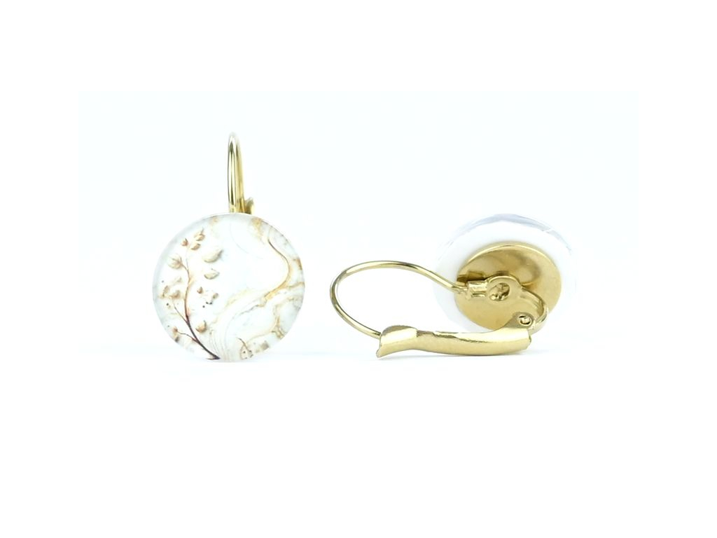 Náušnice jsou ručně vyráběné v České republice, konkrétně ve Středočeském kraji. Jsou tvořené skleněným kabošonem, pod kterým je nalepený motiv. Háček, vyrobený českou firmou je z chirurgické oceli 316 L, pozlacené 14K zlatem, je vhodný pro většinu alergiků na kov.